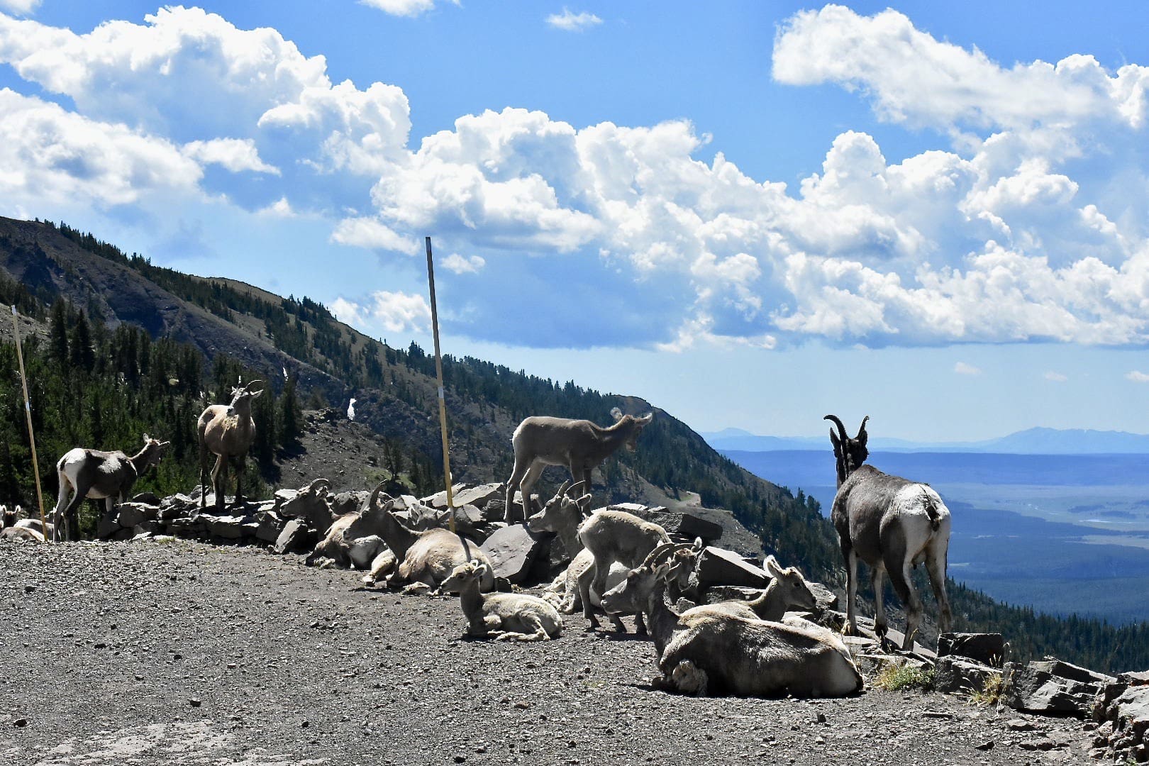 Enter the park this morning and drive about an hour and a half to the Mt. Washburn trail. This 7 mile hike features panoramic views at the tallest peak in the park 🏔. You will be able to see for miles all around.